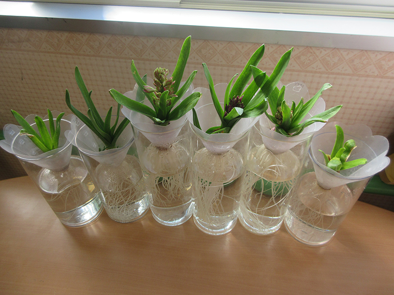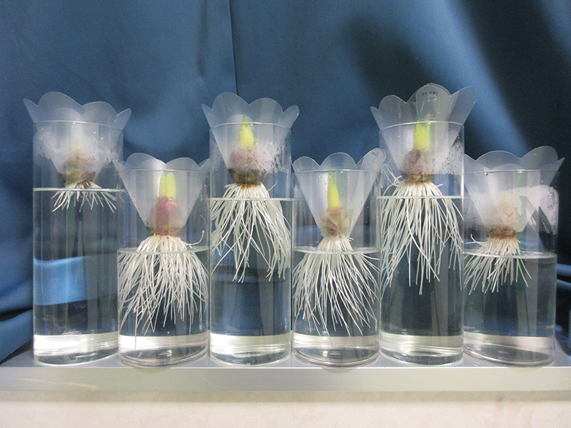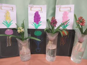 本年度は初めてヒヤシンスの水耕栽培を